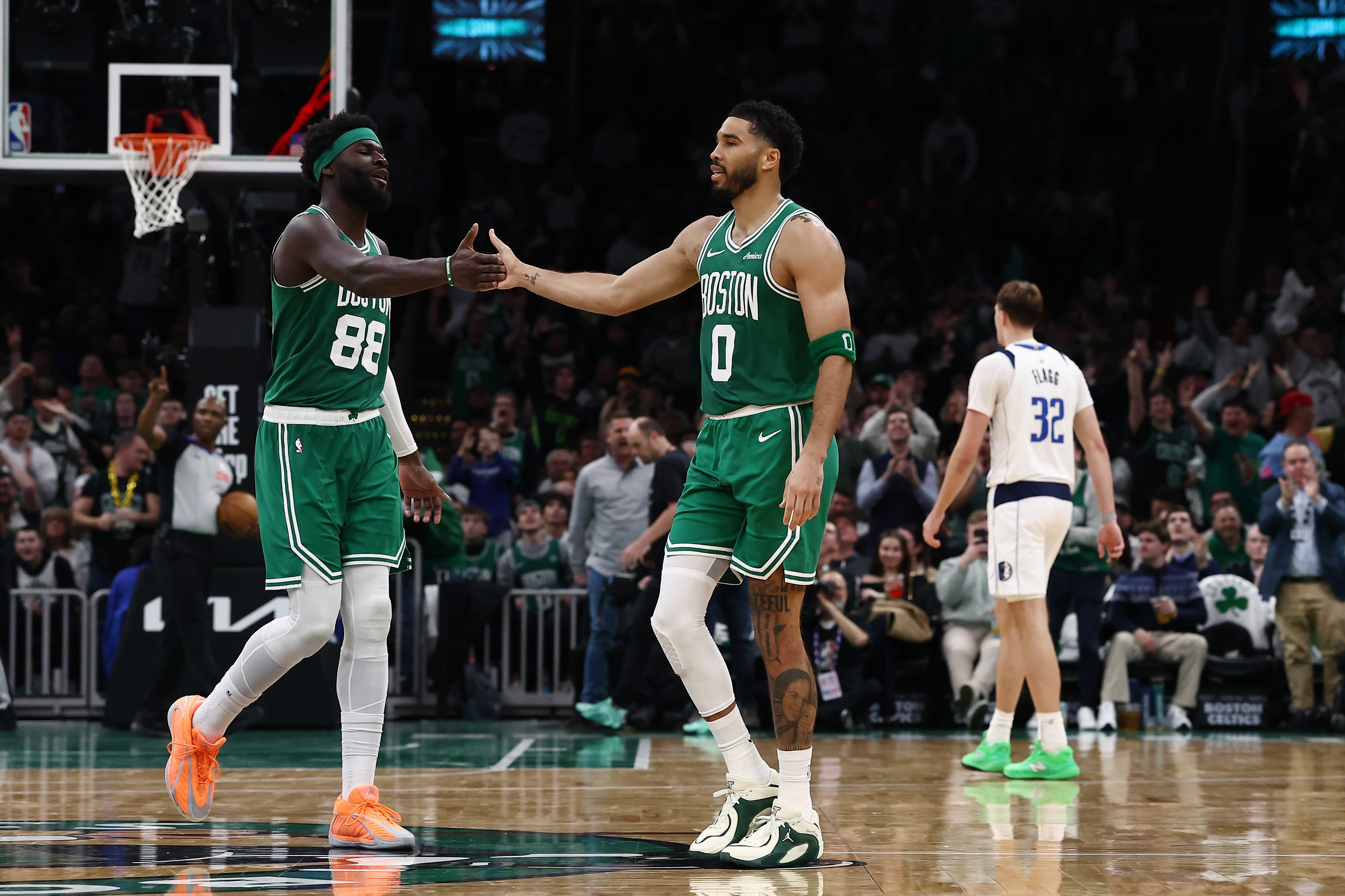 全场比赛奎塔出战31分13秒,13投11中、罚球3中2,拿下24分10篮板3助攻1抢断2盖帽,有2次失误,正负值+14。塔图姆首发出战32分钟,投篮19中8,三分球9中2,罚球2中2,拿到20分14篮板7助攻2抢断的全面数据,正负值+18。